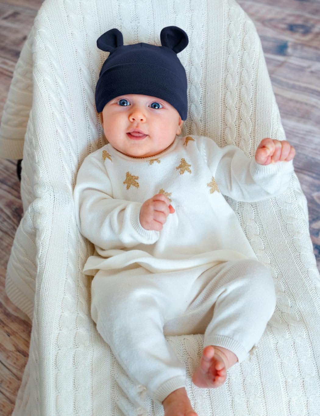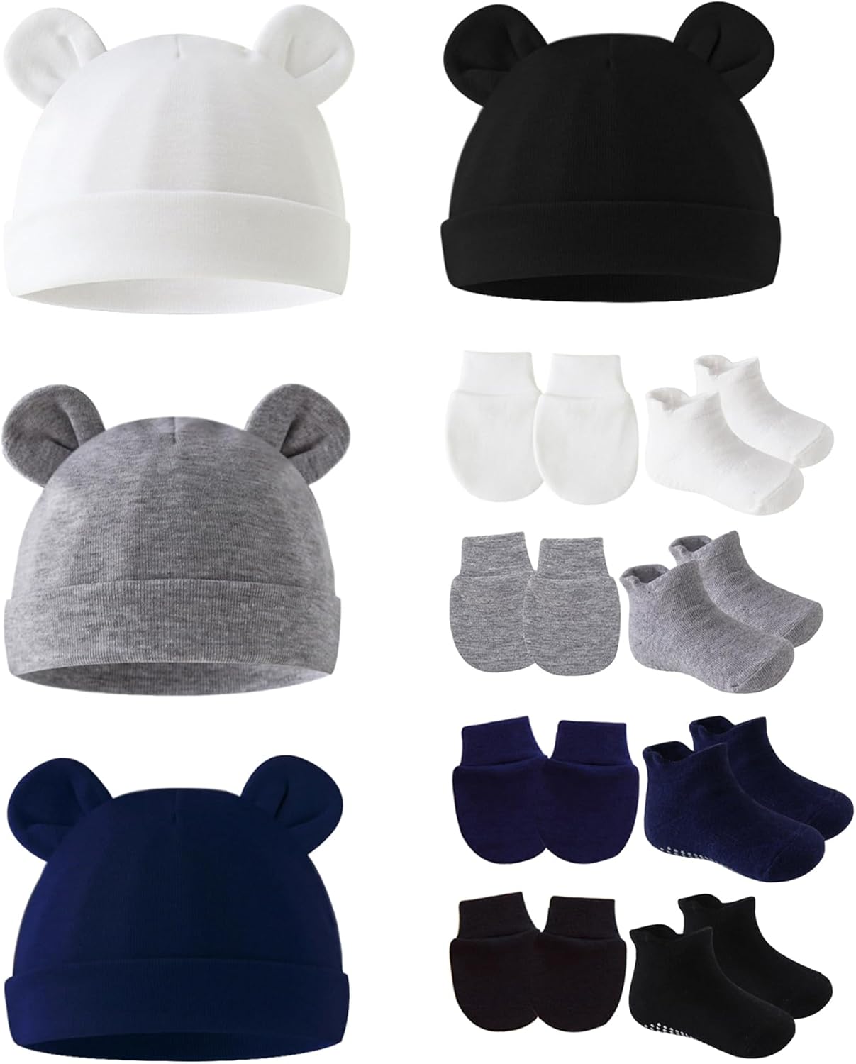 Cotton Ears Baby Hats Mittens with Socks Set Unisex, No Scratch Mittens and Beanie Cap for Infant Toddler Newborn